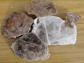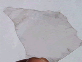 化學(xué)成分 : 白云母化學(xué)式為 KAl2(AlSi3O10)(OH)2 ;鎂硅白云母化學(xué)式為 (Fe2+ 、 M g)(Fe3+,Al3+)(AlSi7O20)(OH)4 ;絹云母化學(xué)式為 KAl2(Si,Al)4O10(OH,F) 2 ;金云母化學(xué)式為KMg3(AlSi3O10)(F,OH)2 云母這種鋁硅酸鹽礦物,具有連續(xù)層狀硅氧四面體構(gòu)造,具極完全之解理,可剝離為具彈性之薄片,質(zhì)柔可彎曲,透明無色,厚塊半透明帶有灰、棕、淡綠、玫瑰紅色,具玻璃至絹絲或珍珠光澤,硬度 2.5~3 ,比重 2.75~3.0 ,耐酸性。